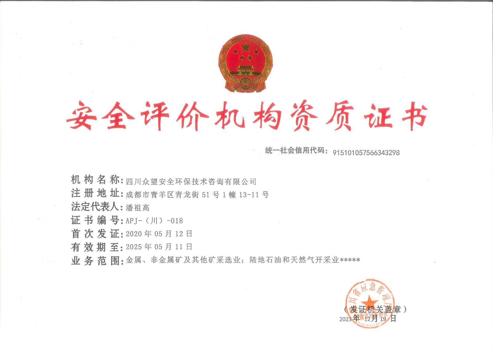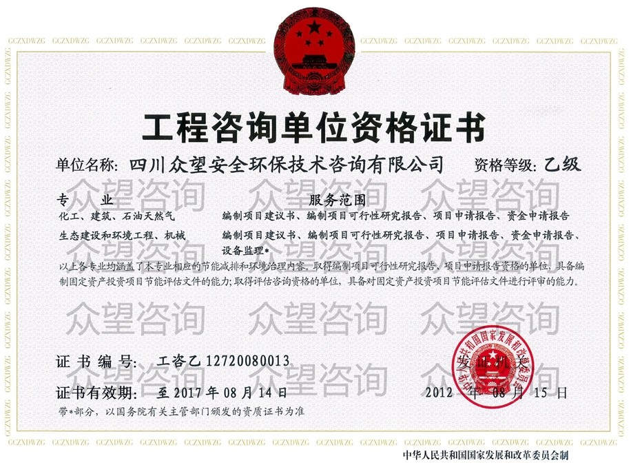 • 眾望咨詢 四川眾望安全環(huán)保技術(shù)咨詢有限公司 ...<詳情>